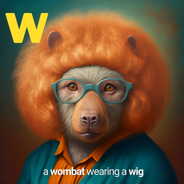 An "AI ABC" book seemed like a great project to put his prompt poetry to the test, and animals wearing crazy clothese seemed like a great challenge.