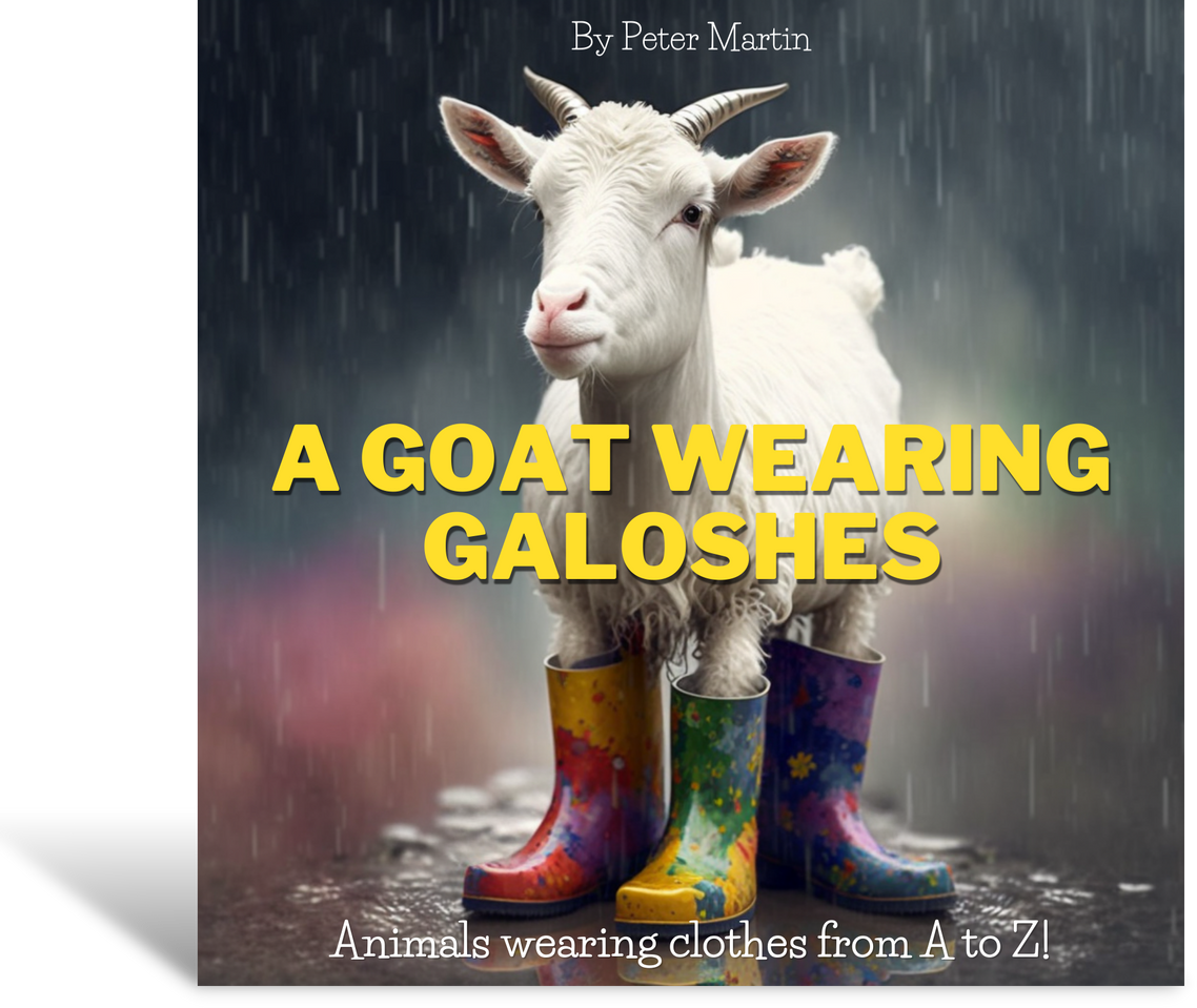 Most of the images in "A Goat Wearing Galoshes" were built using Midjourney AI. Dalle 2, another AI bot was used for some touch up work and layout ideation.